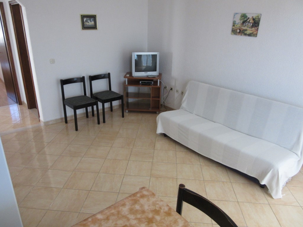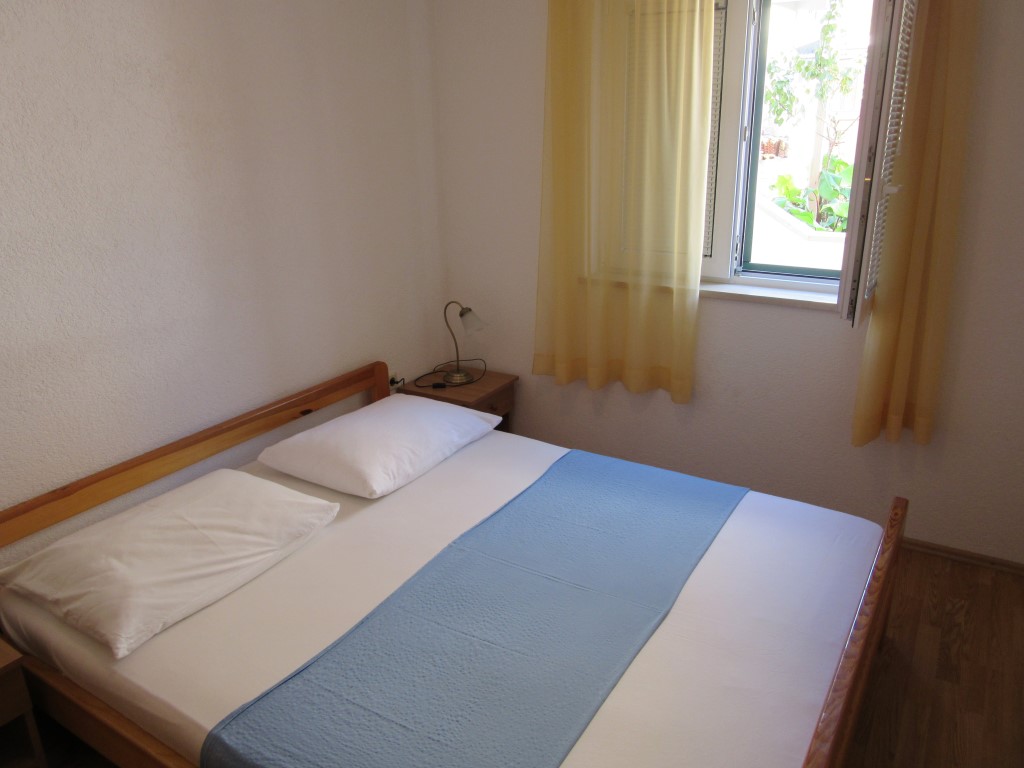 It has one big room with double bed and one single bed. In the living room, there is a couch that can be pulled out and used as extra bed for one person.